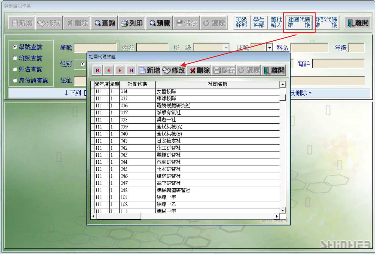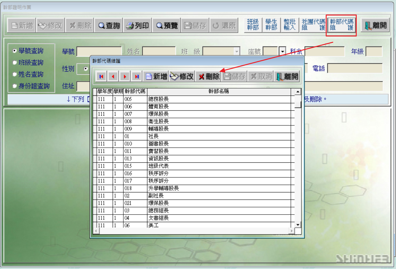 **可新增、修改或刪除幹部相關代碼。**&#x20;